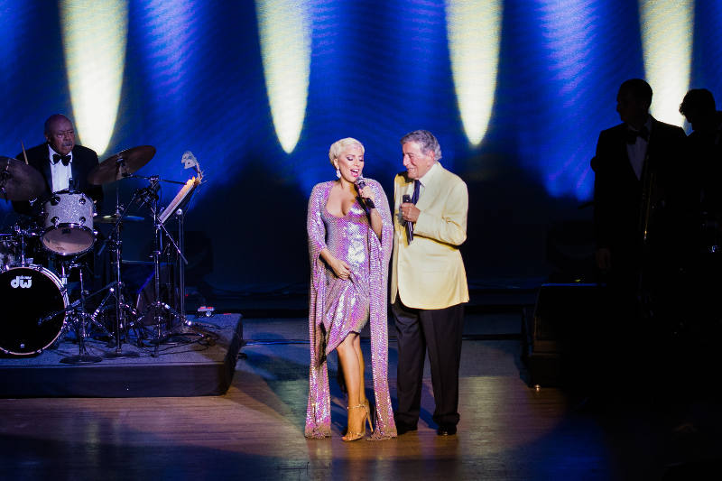 Tony Bennett and Lady Gaga performing at Tanglewood, Tuesday, June 30, 2015 (Michael Blanchard)